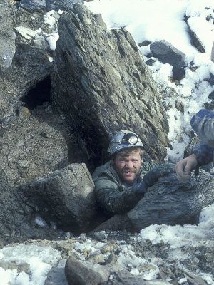 Another ballooning of activity occurred between 1980 and 1988, partially because of a willingness to use helicopters to open up remote caving areas, partially as a spin-off of a succession of British expeditions to the Rockies, and partially the result of a new wave of energetic novices. This period began with important new discoveries at Crowsnest Pass, most of which have since connected with Yorkshire Pot. Other discoveries and explorations included Fang Cave, Porcupine Cave, White Hole, Dezaiko Cave and Moon River Cave, all in the north and central Rockies and many of which ended up on the 'top ten' of Canada’s ‘longest and deepest list at the time. As well, Alberta Speleological Society cavers were the first to document caves on the Queen Charlotte Islands, and participated in the exploration of some of the deepest caves on Vancouver Island. This busy period ended on a high note with the ‘bottoming’ of a 254m deep shaft in Close To The Edge, thought at that time to be one of the 50 deepest shafts in the world.